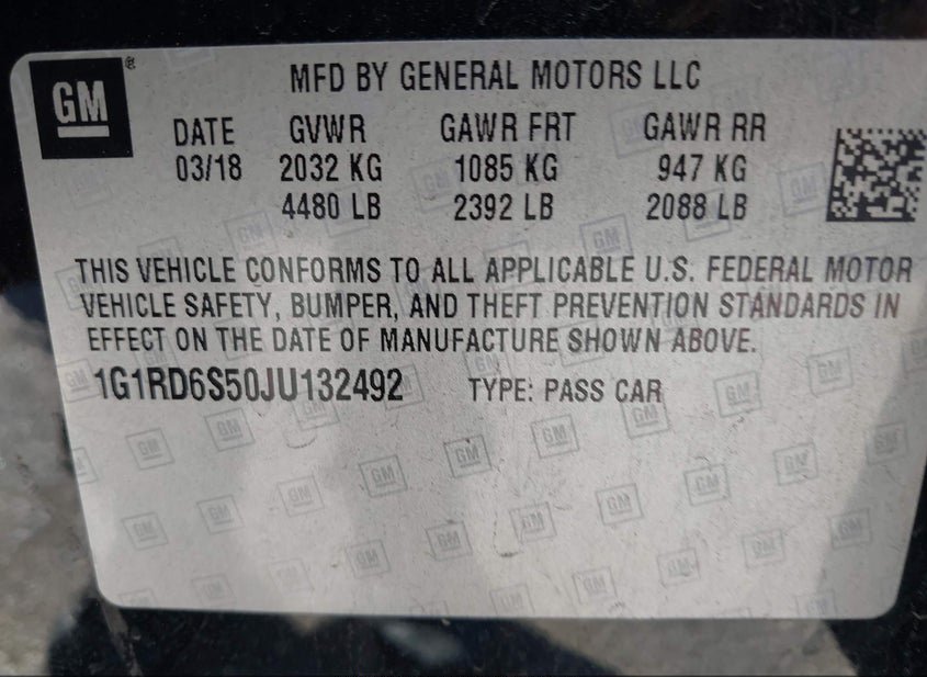 - VIN: 1G1RD6S50JU132492