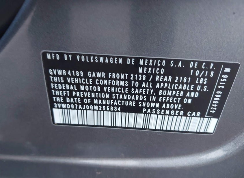 - VIN: 3VWD67AJ0GM255834