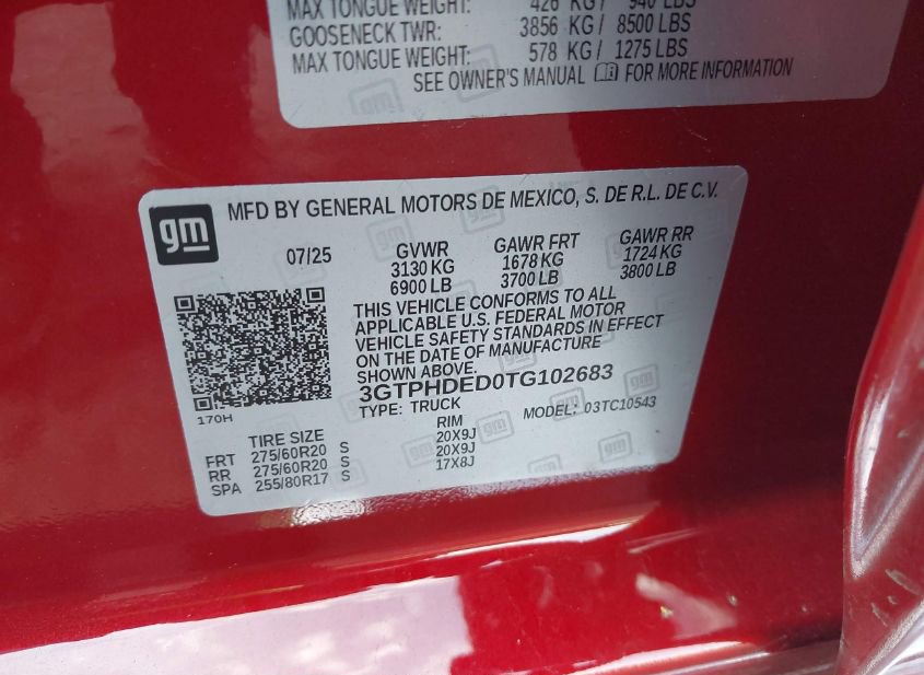 - VIN: 3GTPHDED0TG102683