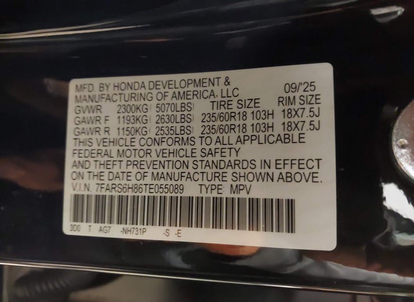 - VIN: 7FARS6H86TE055089