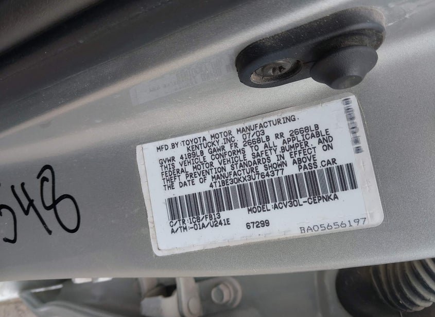 - Название лота: 2003 Toyota Camry 2.4L