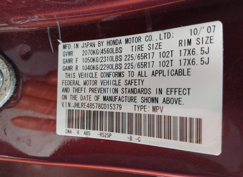 - VIN: JHLRE48578C015379