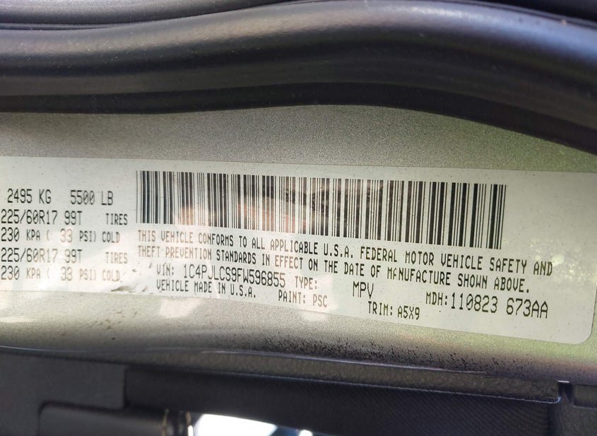 - VIN: 1C4PJLCS9FW596855