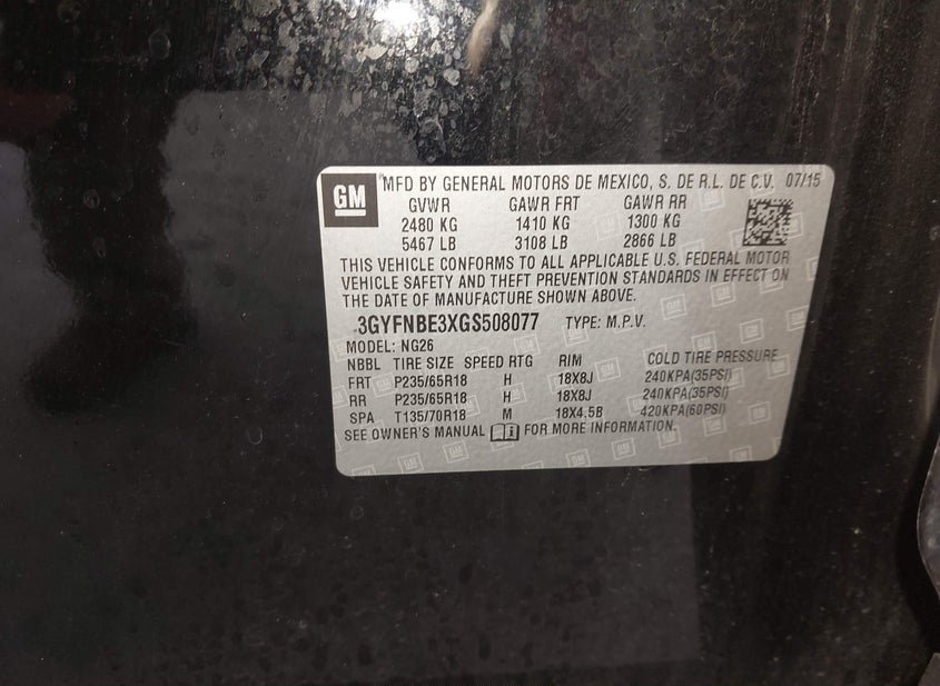 - VIN: 3GYFNBE3XGS508077