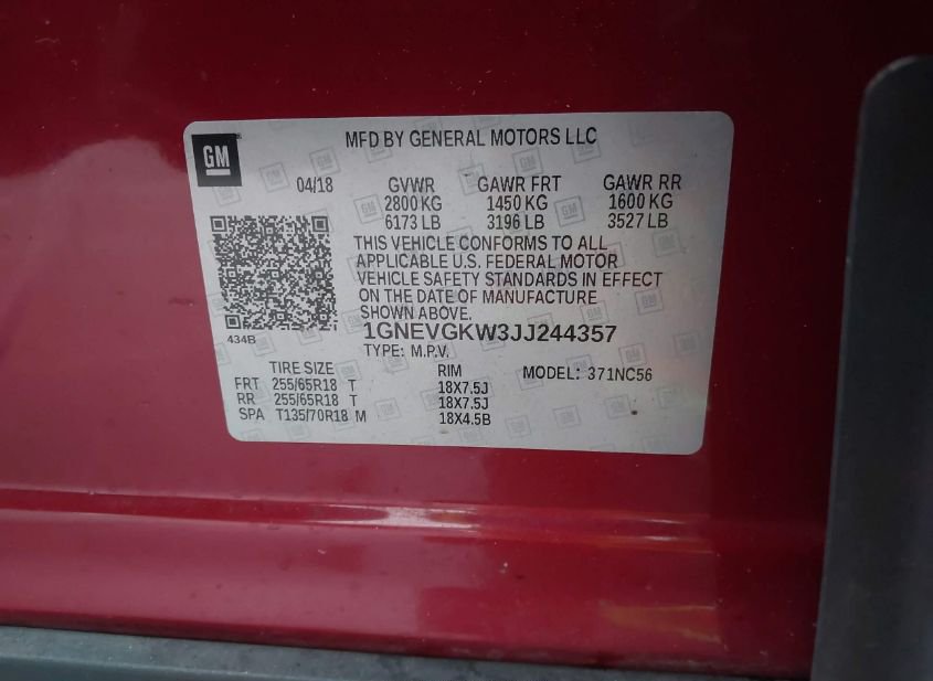 - VIN: 1GNEVGKW3JJ244357