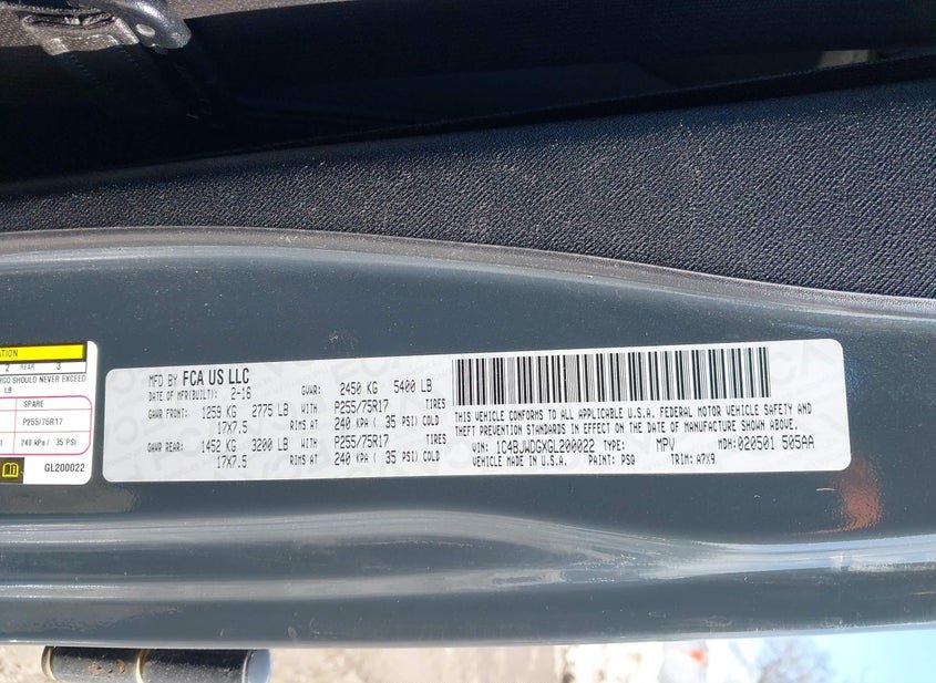 - VIN: 1C4BJWDGXGL200022