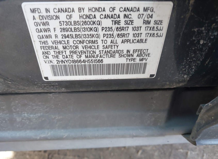 - VIN: 2HNYD18664H551566