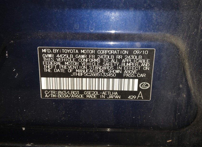- VIN: JTHBF5C26B5133450