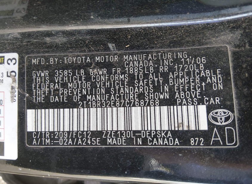 - VIN: 2T1BR32E87C768768