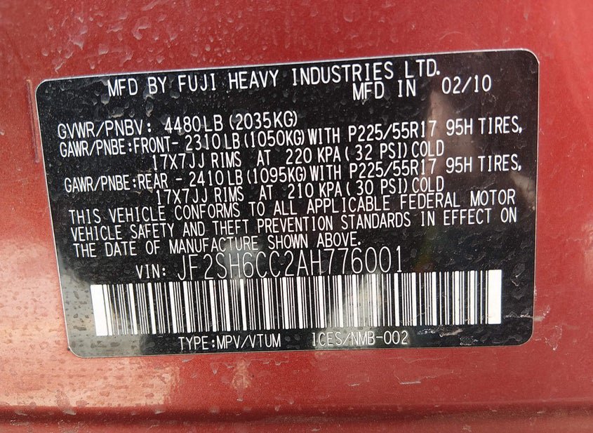 - VIN: JF2SH6CC2AH776001