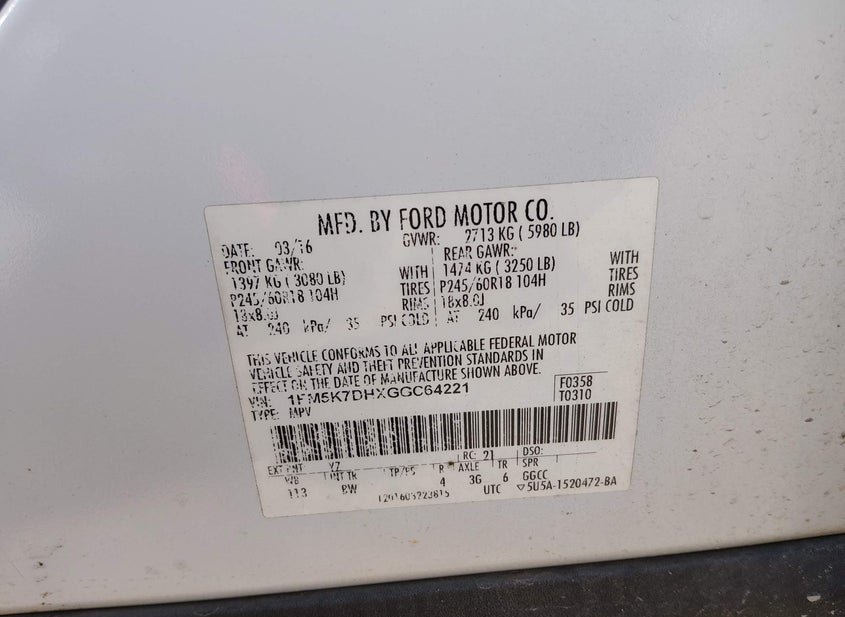- VIN: 1FM5K7DHXGGC64221