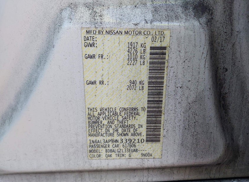 - VIN: 1N4AL3AP9HN339210