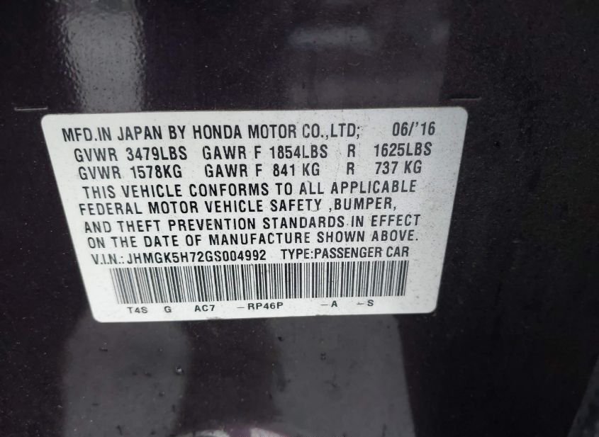 - VIN: JHMGK5H72GS004992