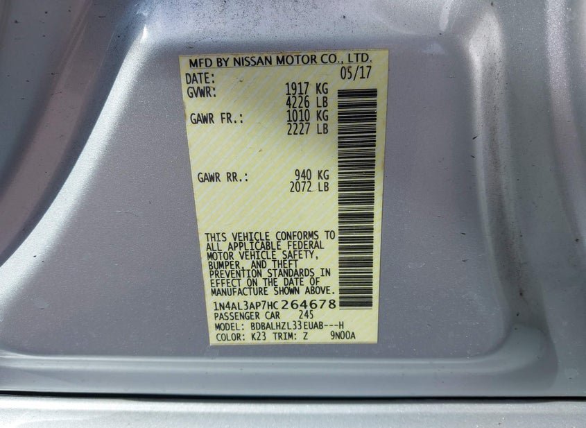 - VIN: 1N4AL3AP7HC264678