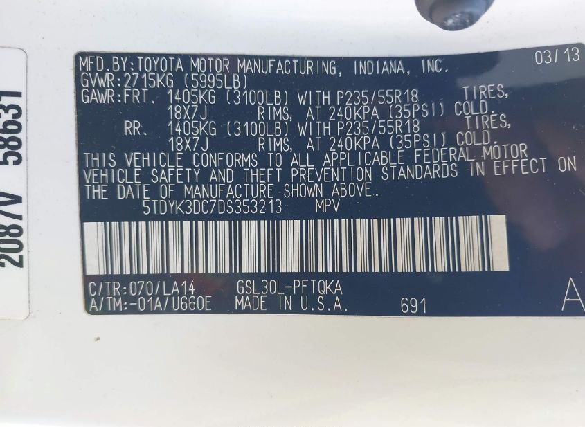 - VIN: 5TDYK3DC7DS353213