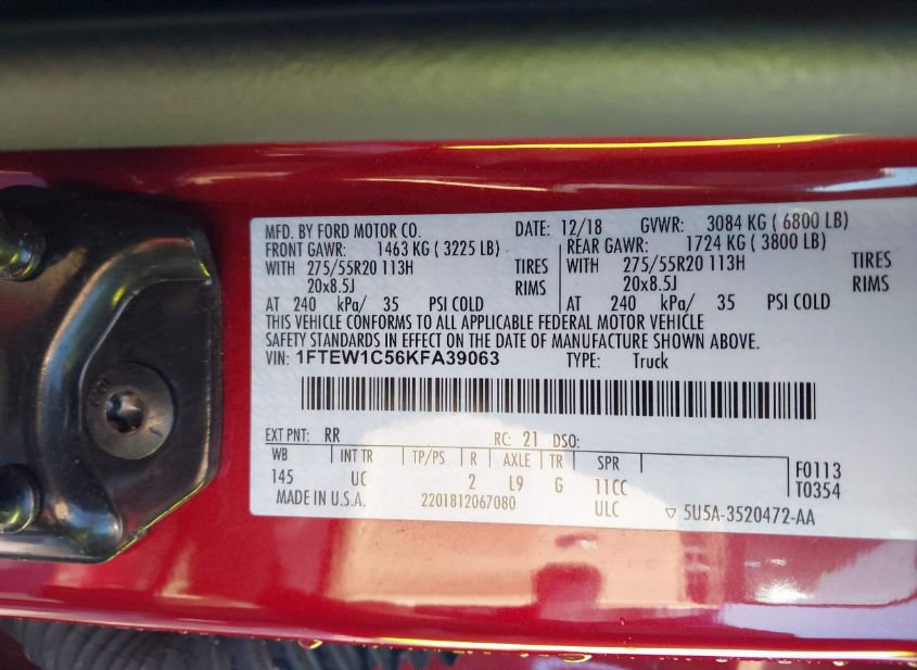 - VIN: 1FTEW1C56KFA39063