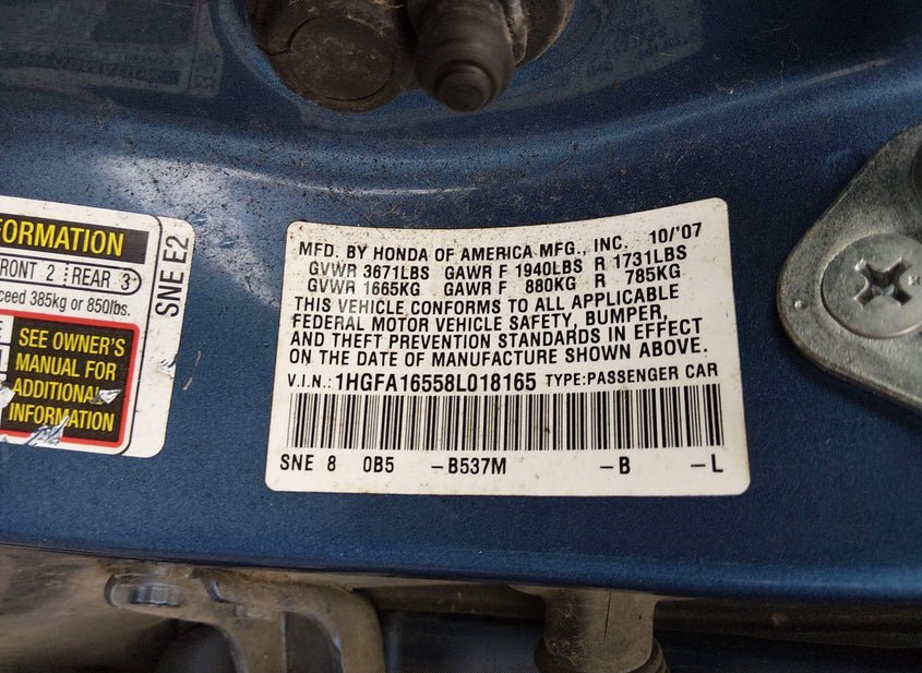 - VIN: 1HGFA16558L018165