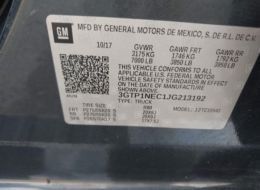 - VIN: 3GTP1NEC1JG213192