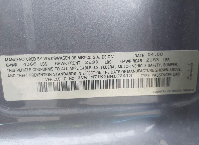 - VIN: 3VWHM71K28M162413