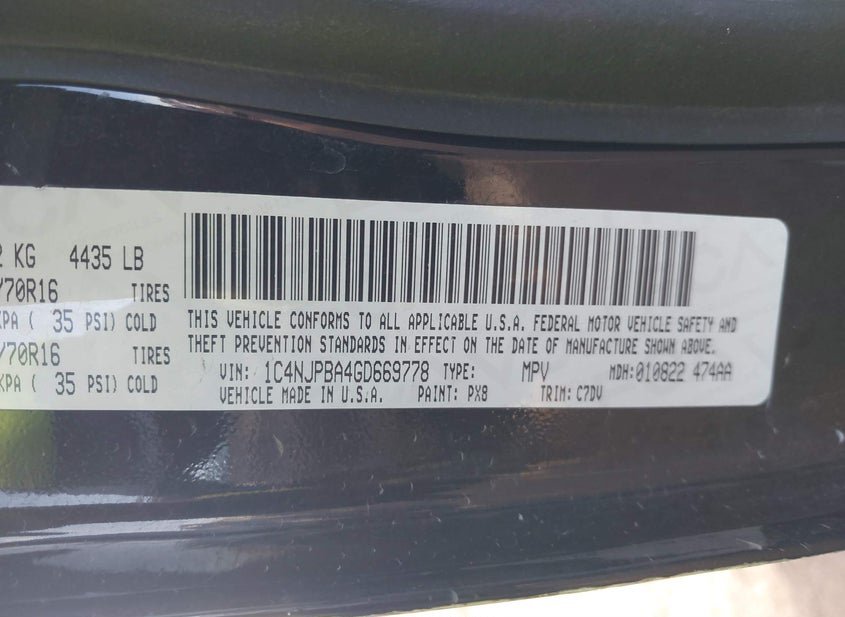- VIN: 1C4NJPBA4GD669778