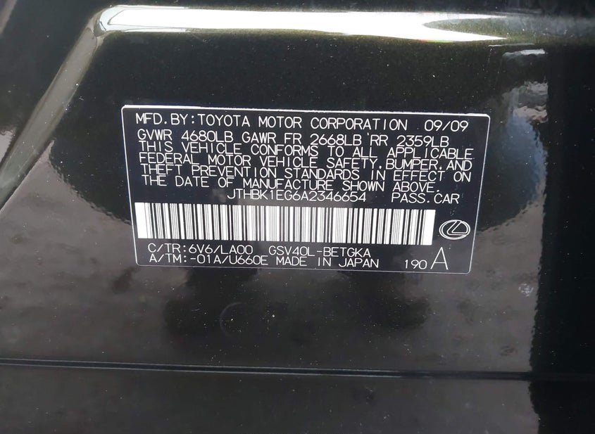 - Название лота: 2010 LEXUS ES 350