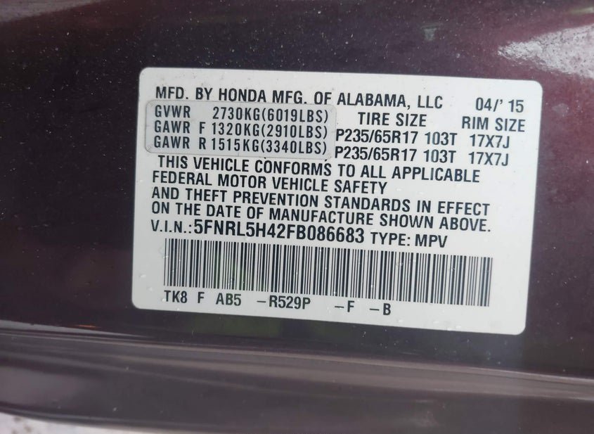- VIN: 5FNRL5H42FB086683