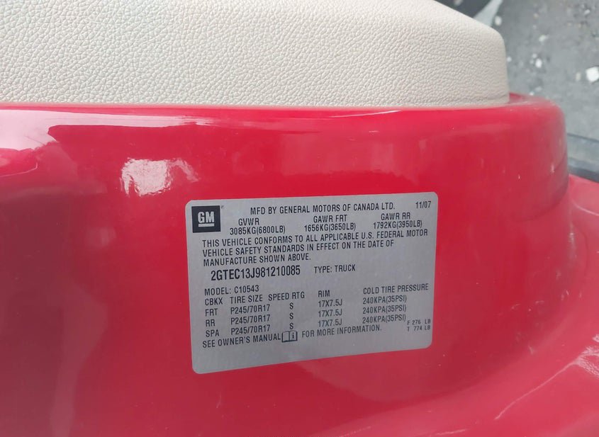 - VIN: 2GTEC13J981210085