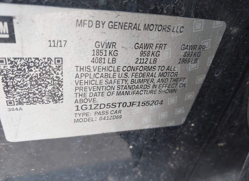 - VIN: 1G1ZD5ST0JF155204