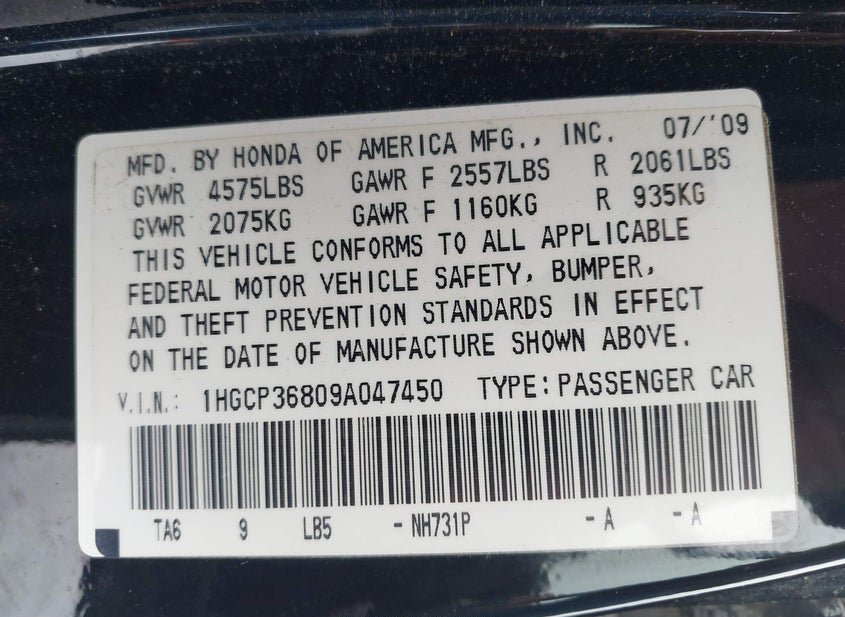 - VIN: 1HGCP36809A047450