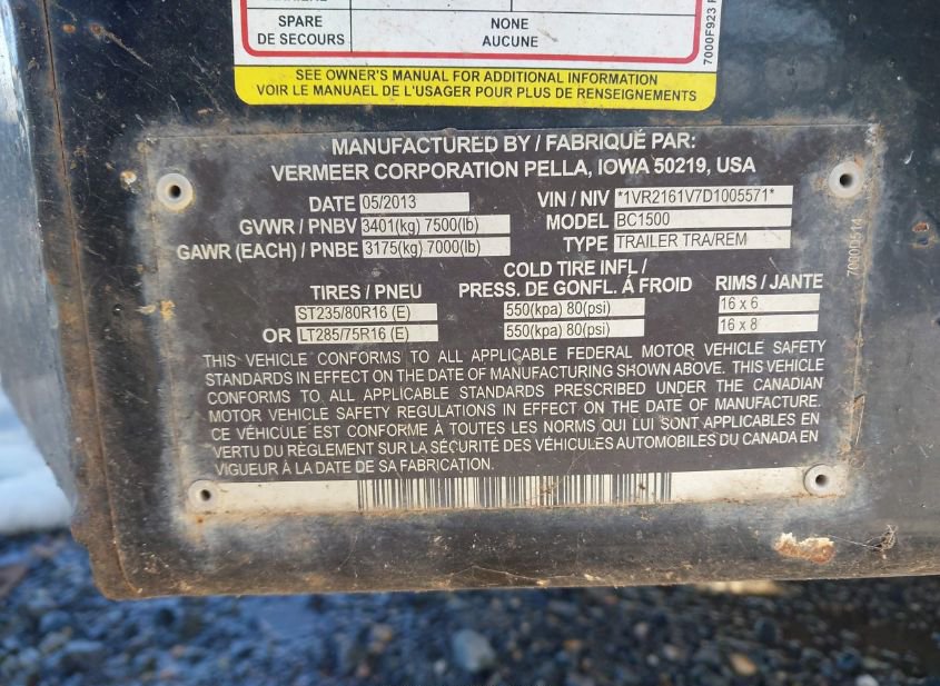 - Название лота: 2013 VERMEER MFG. CO.