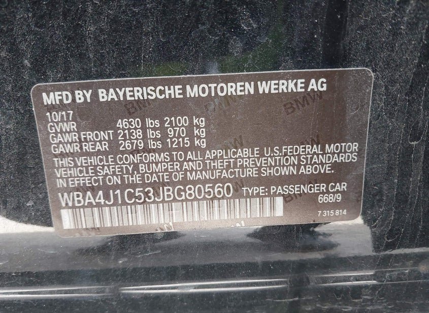 - VIN: WBA4J1C53JBG80560