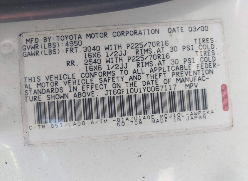 - VIN: JT6GF10U1Y0067117