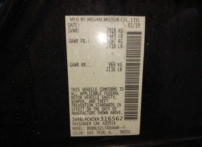 - VIN: 1N4BL4CW5KN316562