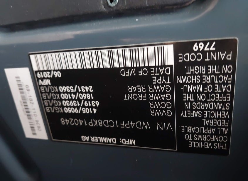 - VIN: WD4PF1CD8KP140248