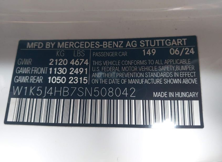 - VIN: W1K5J4HB7SN508042