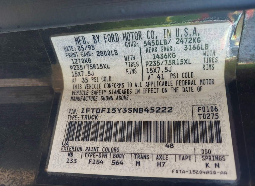 - VIN: 1FTDF15Y3SNB45222