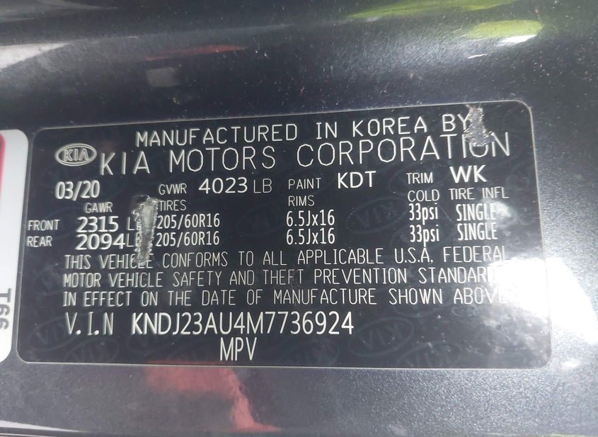 - VIN: KNDJ23AU4M7736924