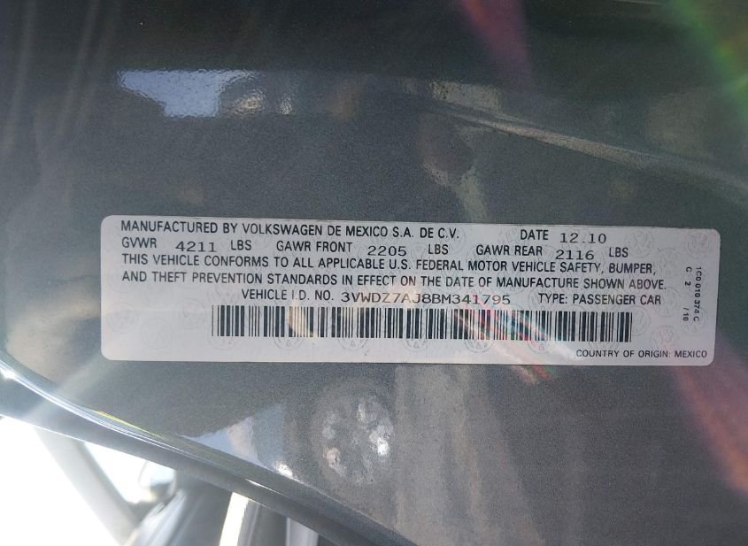 - VIN: 3VWDZ7AJ8BM341795