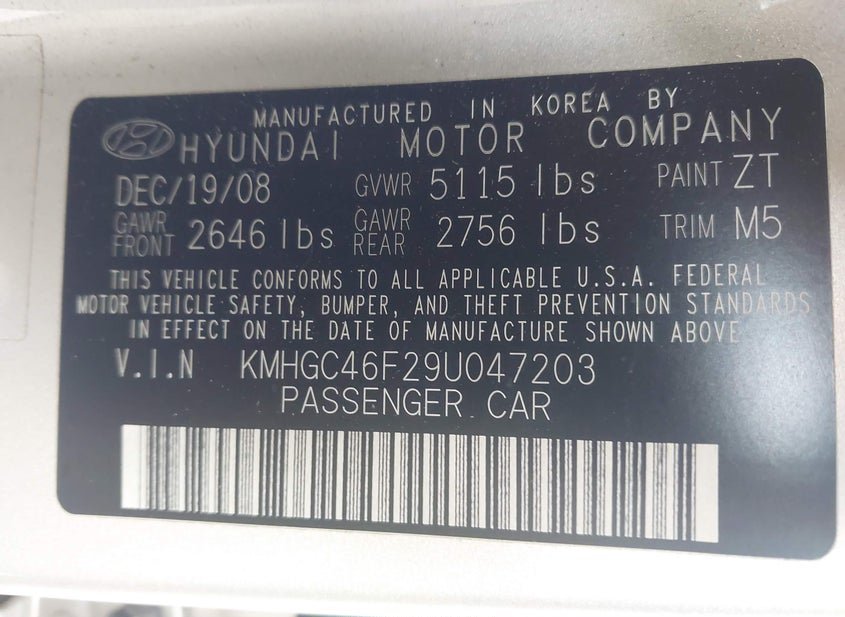 - VIN: KMHGC46F29U047203