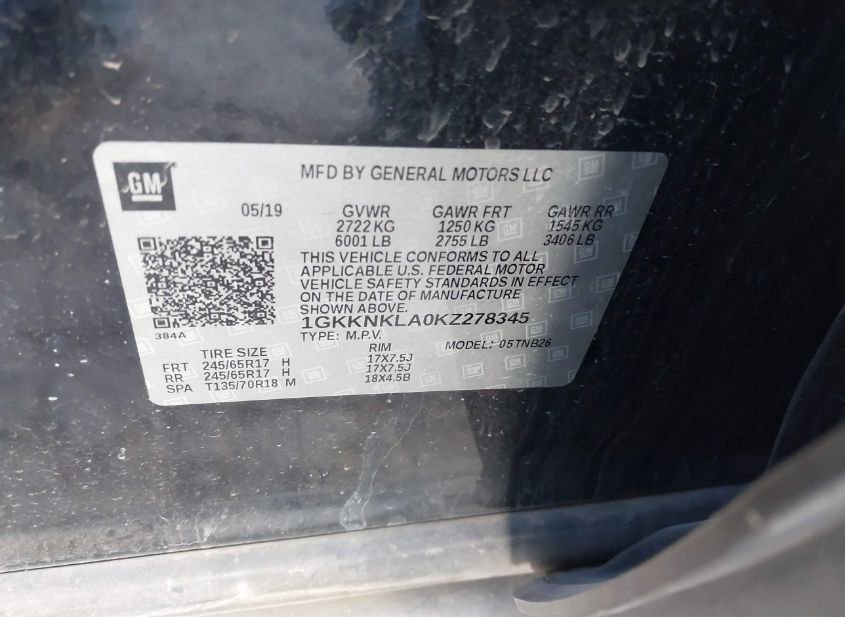 - VIN: 1GKKNKLA0KZ278345