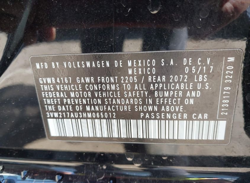 - VIN: 3VW217AU3HM065012