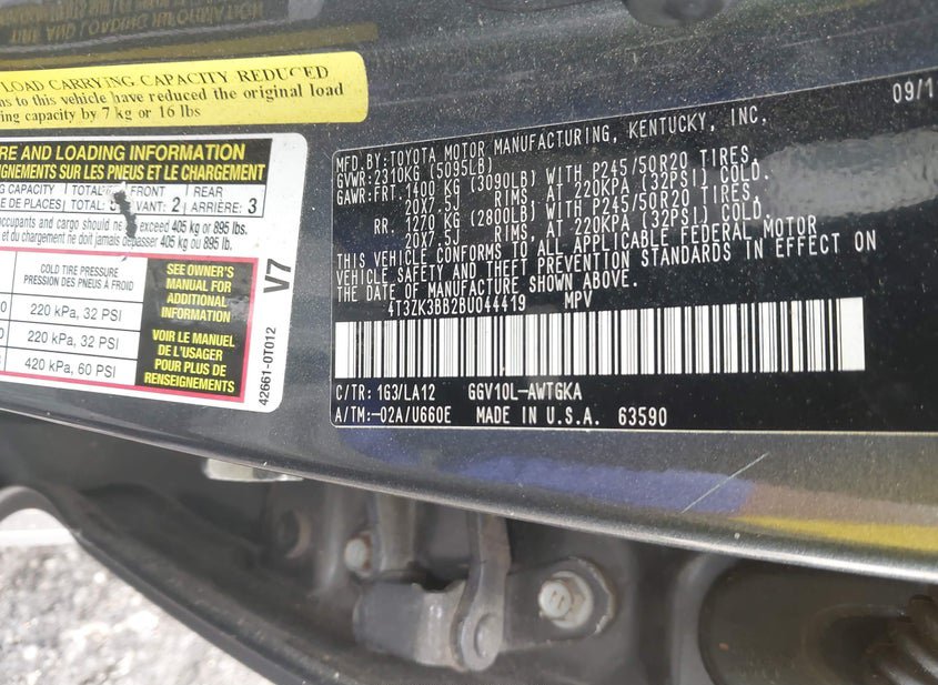 - VIN: 4T3ZK3BB2BU044419