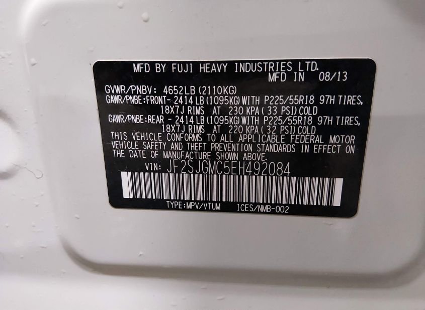 - VIN: JF2SJGMC5EH492084