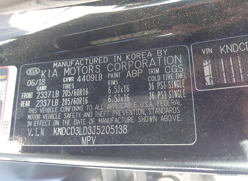 - VIN: KNDCD3LD3J5205138