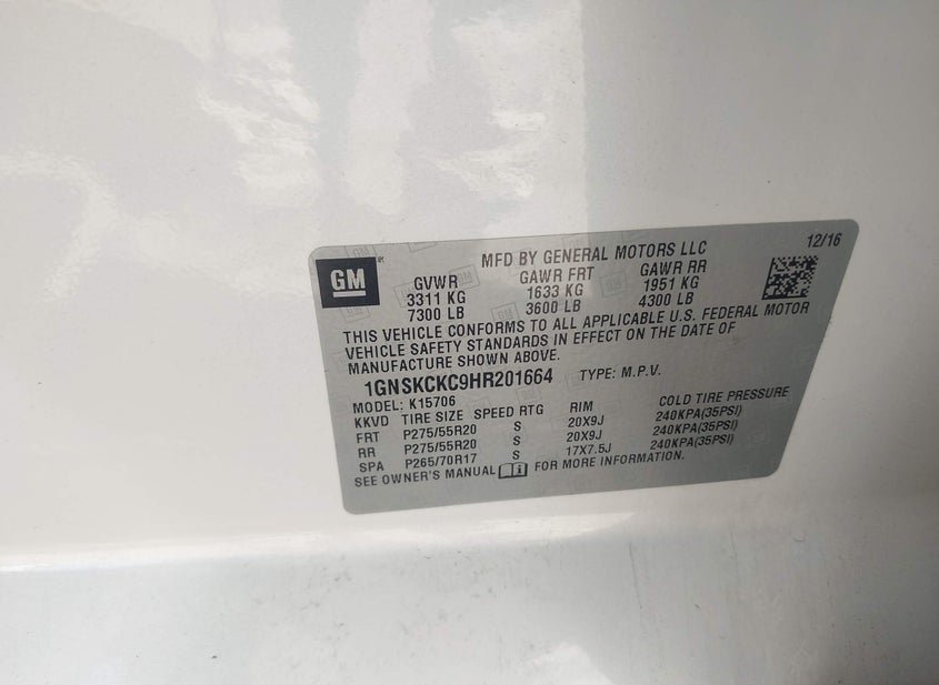 - VIN: 1GNSKCKC9HR201664