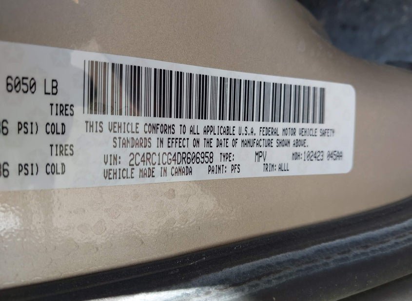- VIN: 2C4RC1CG4DR606958
