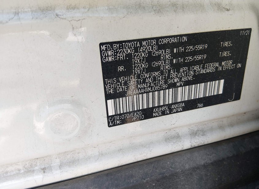 - VIN: JTEAAAAHXMJ085789