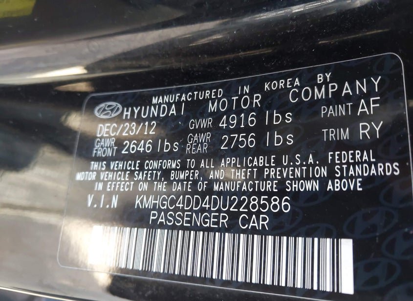 - VIN: KMHGC4DD4DU228586