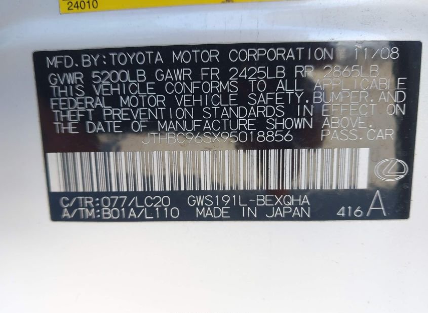 - VIN: JTHBC96SX95018856