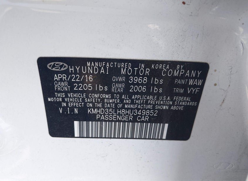 - VIN: KMHD35LH8HU349852